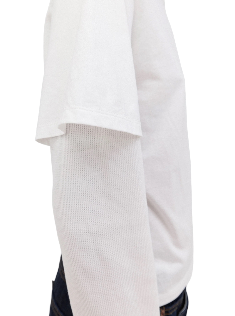 Inspired by 90's styling, the 2Tee is a double layered crew neck tee. It is a slightly boxy and loose fit.