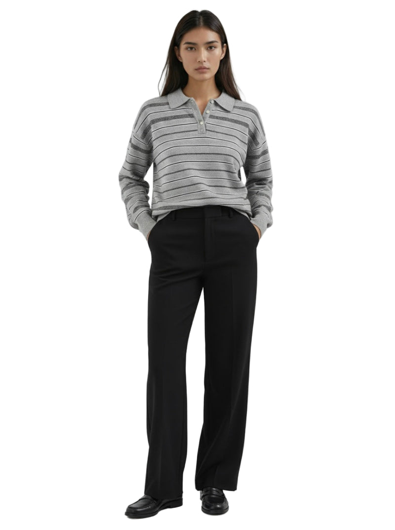 ATELIER POLO SWEATER IN HEATHER GREY STRIPE