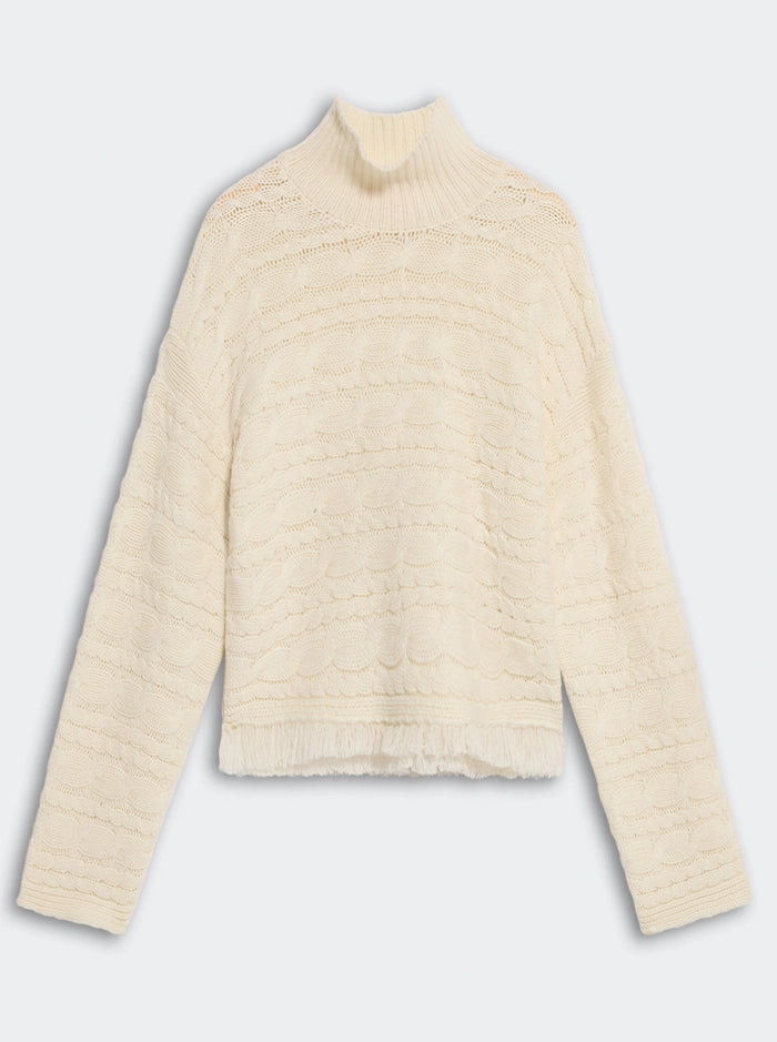 CROPPED CABLE TURTLENECK - CREAM