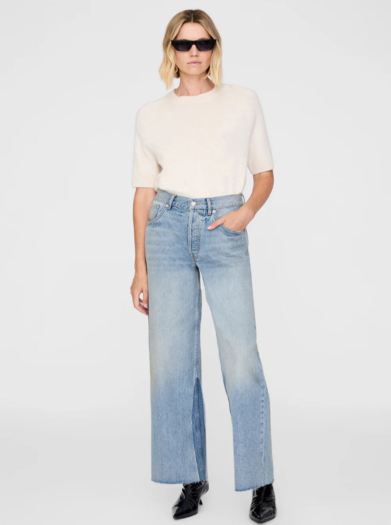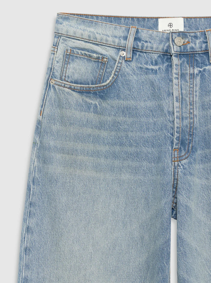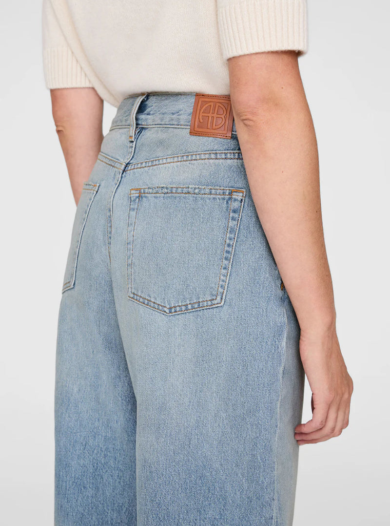 The Manon Jean features a baggy silhouette constructed from midweight 100% regenerative cotton without stretch in a medium light blue wash.