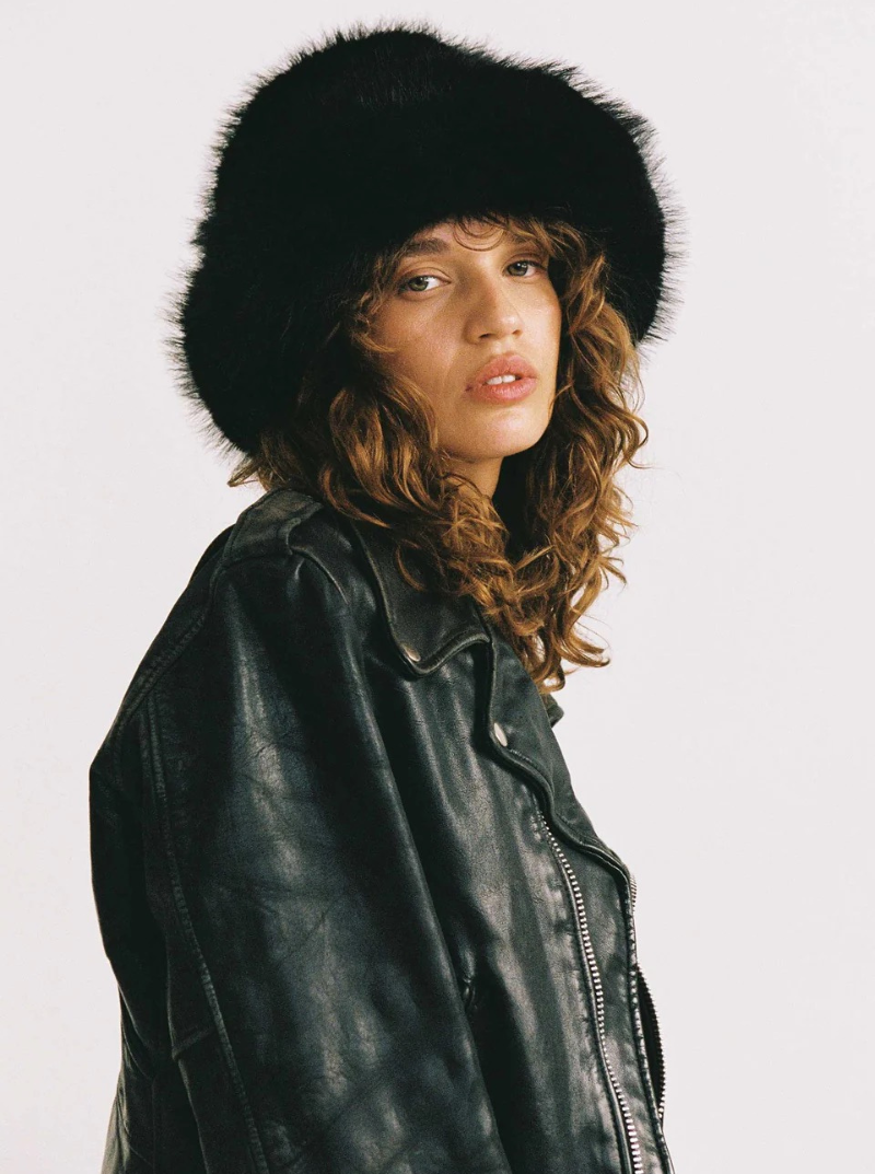 Like a warm hug on a chilly day, this sumptuously soft faux-fur bucket feels super cozy yet effortlessly cool.