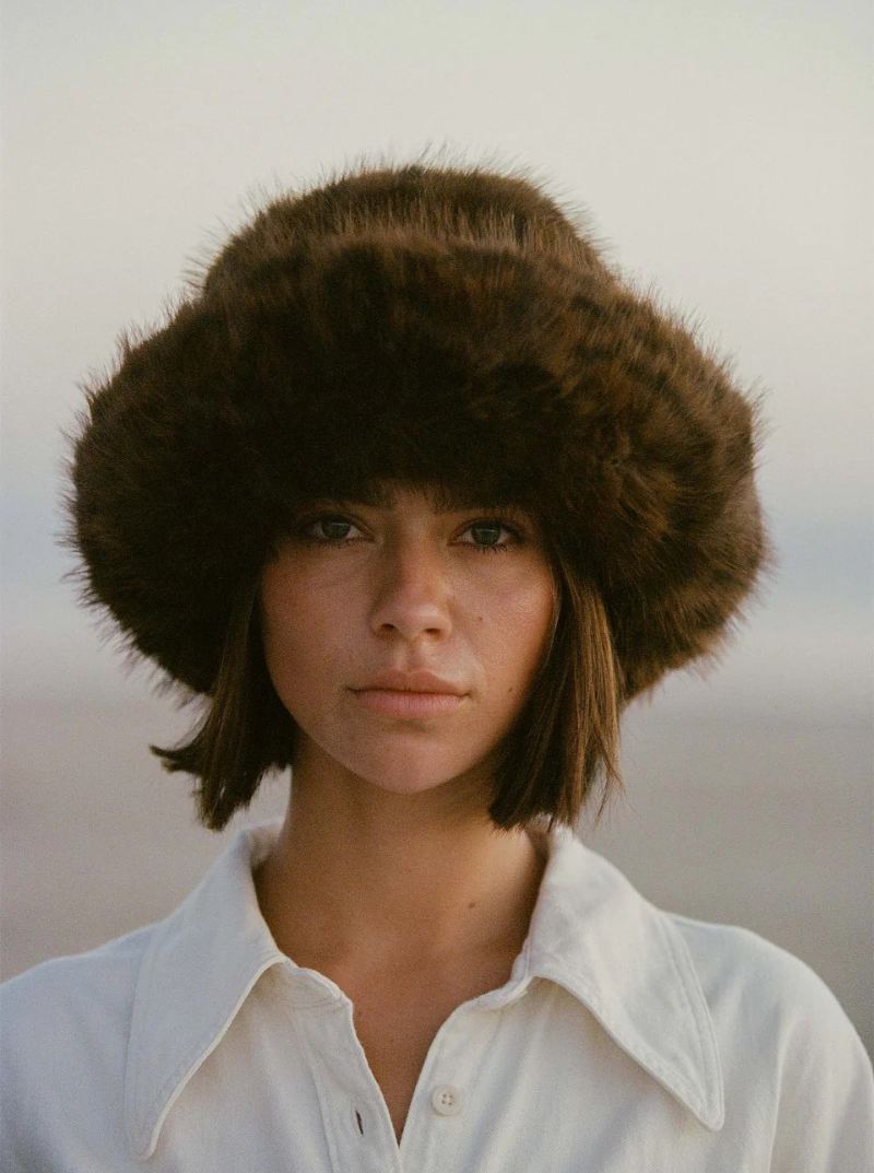 Like a warm hug on a chilly day, this sumptuously soft faux-fur bucket feels super cozy yet effortlessly cool in the leopard print.