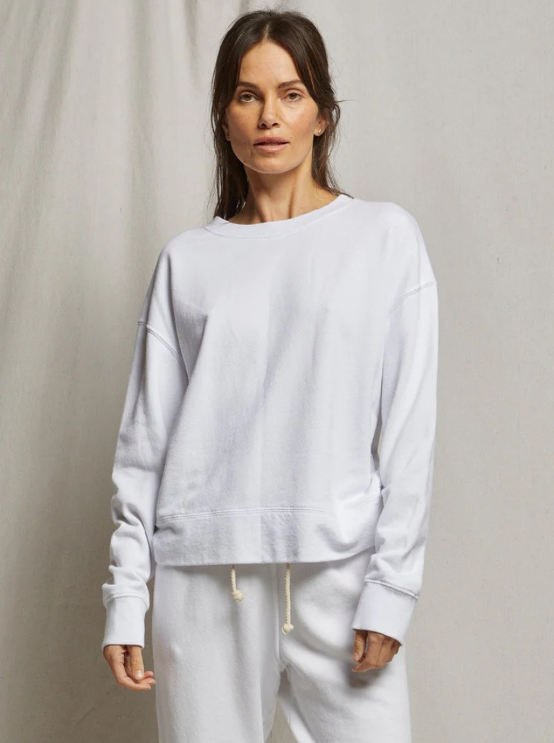 drop shoulder and easy fit, our lightweight, relaxed vintage french terry creates the most coveted sweatshirt in your collection. it's super soft and plush with a classic sweatshirt fit that hits just below the waist.