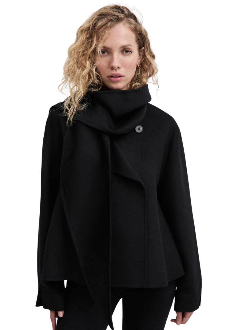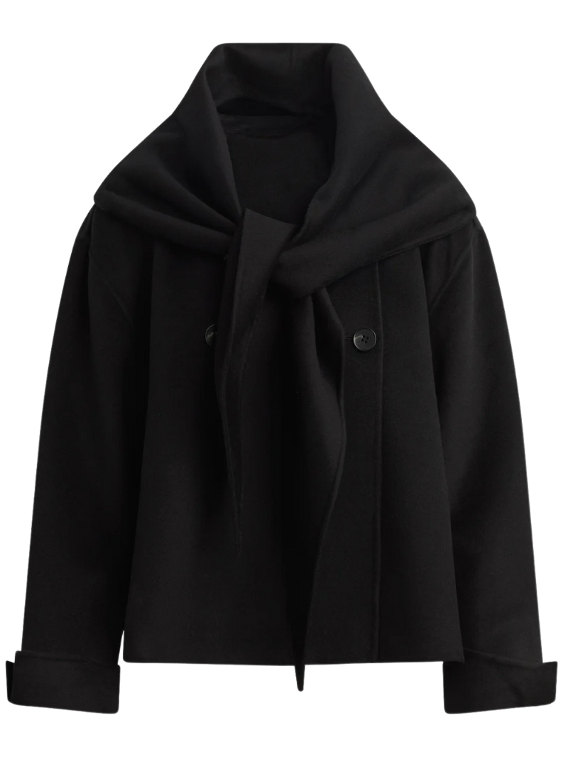 The Jamie Coat is a cold-weather favorite inspired by our best-selling sweater. Double-faced wool, double-breasted front, swingy shape, and a detachable scarf that feels like a built-in accessory.